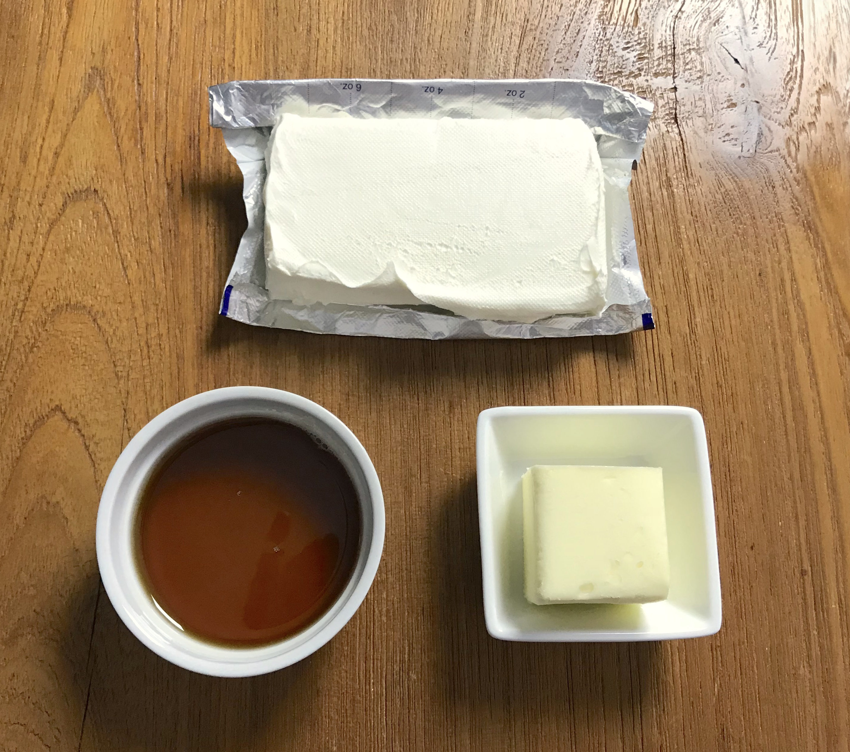- Mix cream cheese, butter, and syrup until smooth. Set aside.