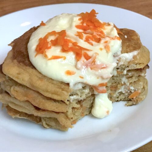 Cake for Breakfast! Carrot Cake Pancakes with Maple Cream Cheese Glaze!