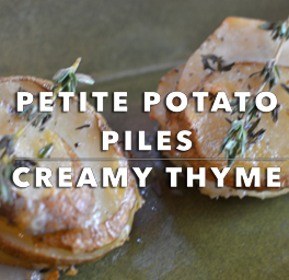 Right before I plunged into bringing you this year’s Red Carpet Menu, I promised you a second version of Potato Piles so here you are! We’re using thyme with cream. It’s really simple and really flavorful.