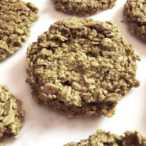 Enjoy these oatcakes on their own or top them with whatever you like – guacamole, jam. cream cheese, brie, bacon & eggs, salsa, yogurt, fresh fruit, etc.